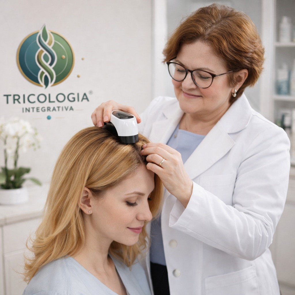 Terapia capilar com recursos como laserterapia e microagulhamento, quando necessário